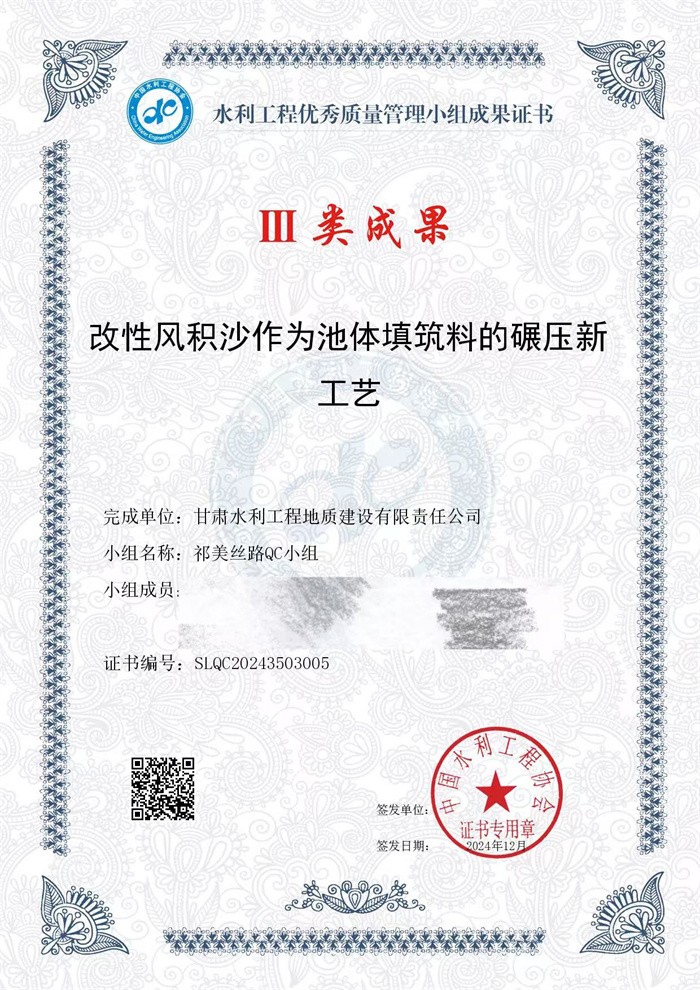 近日,从中国水利工程协会传来喜讯,地建公司申报的一项QC课题获评2024年度水利工程优秀质量管理小组成果Ⅱ类成果奖,两项QC课题均获中国水利工程优秀质量管理活动Ⅲ类成果。