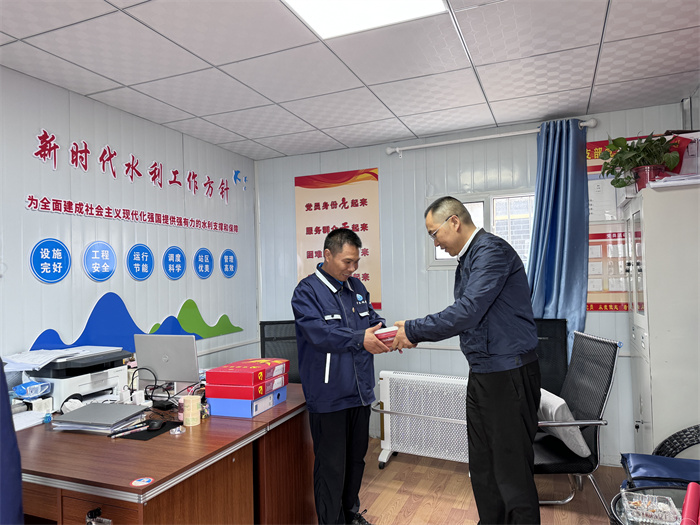 上午,在天祝县干渣子调蓄水池项目部开展“送书到支部”活动,公司党委副书记、总经理杜云龙同志为第二党支部送上《党章》《深入学习贯彻习近平关于应急管理的重要论述》《党员学习笔记》等学习读物,要求支部深入学习贯彻习近平总书记关于安全生产重要论述和重要指示批示精神,通过开展集中学习、交流研讨等,全面领会习近平总书记关于安全生产重要论述的精髓要义。